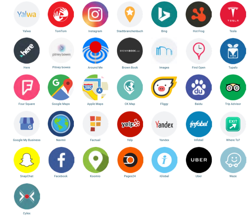 Google, Google Maps, Apple Maps, Facebook, Bing, Yelp....